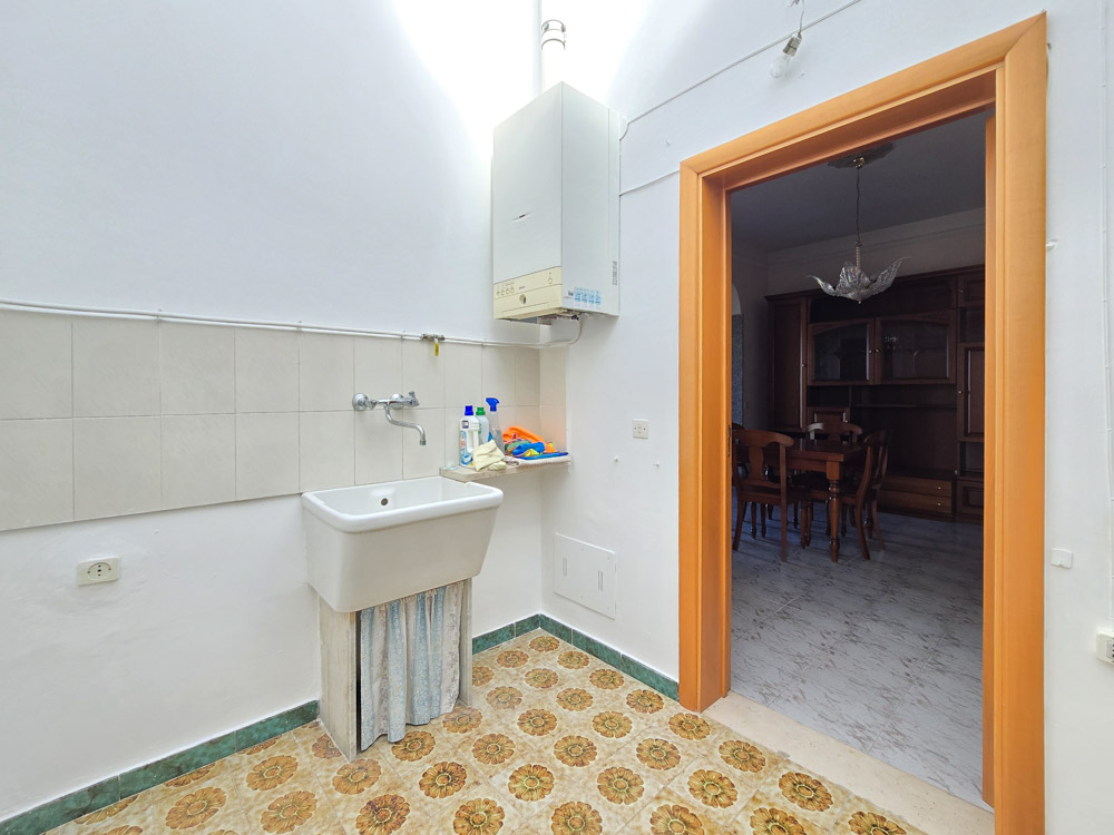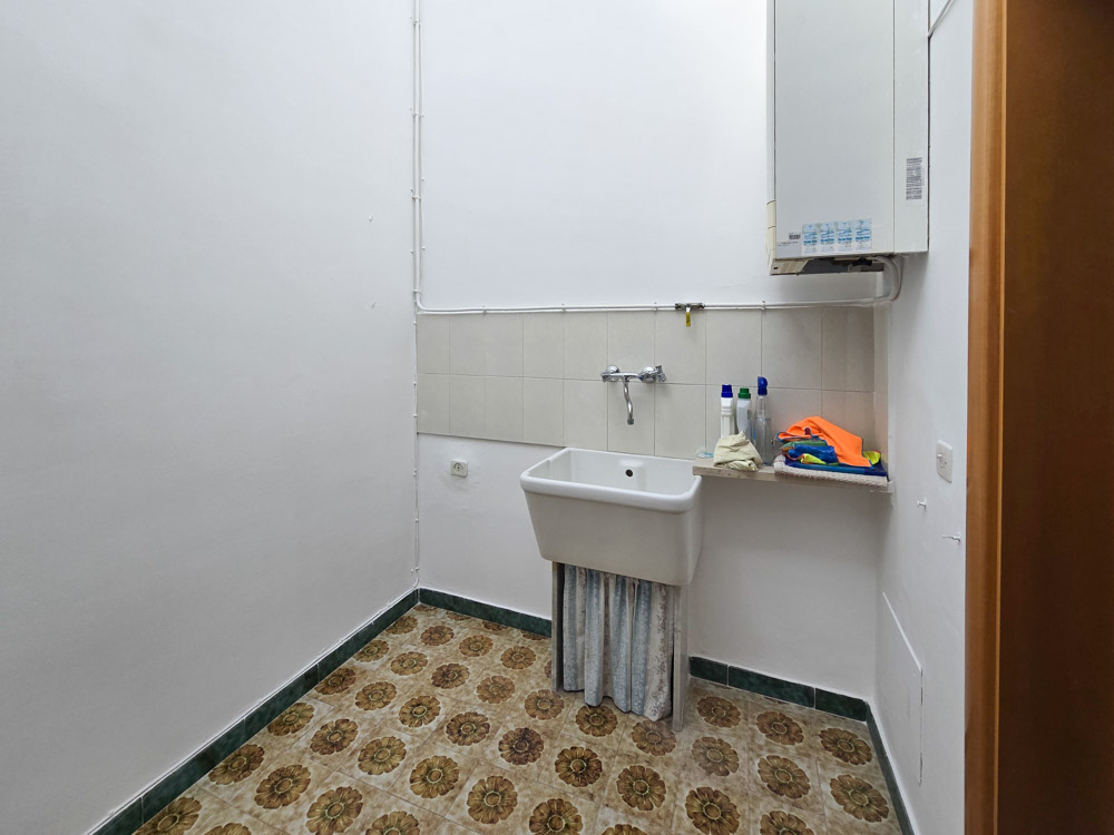 Situata al piano rialzato, la casa dispone di un accogliente soggiorno, una sala da pranzo, un bagno, una lavanderia e una camera da letto, tutti spazi luminosi e ben distribuiti, per un totale di 115 mq circa.