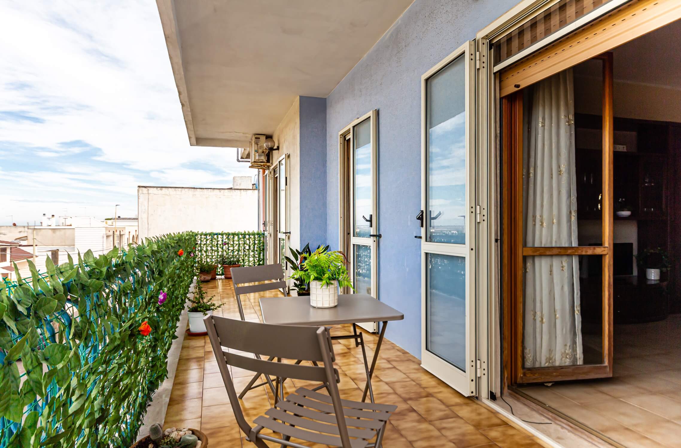 Il soggiorno e la camera matrimoniale affacciano su di un ampio e vivibile balcone dal lato strada.