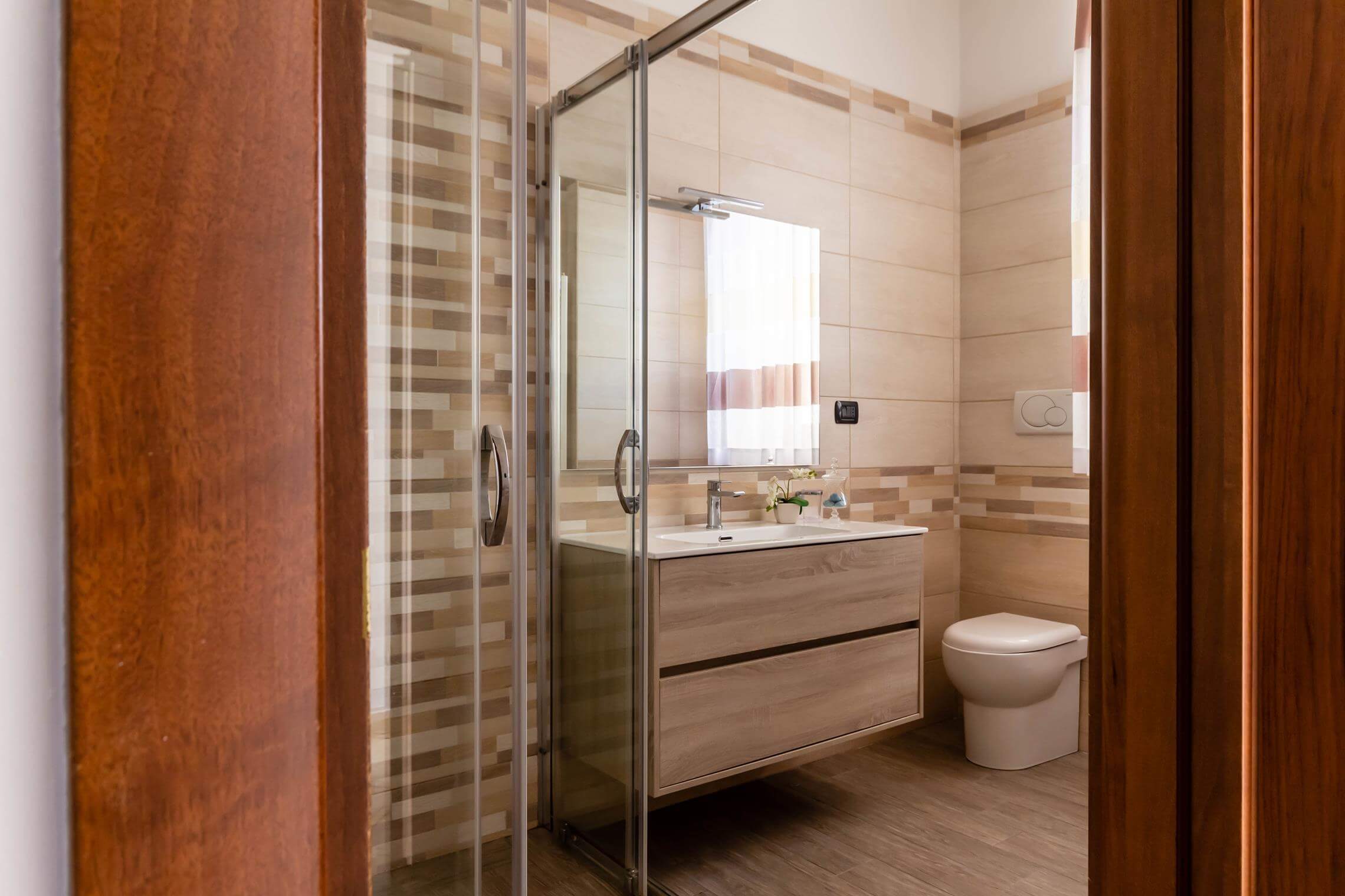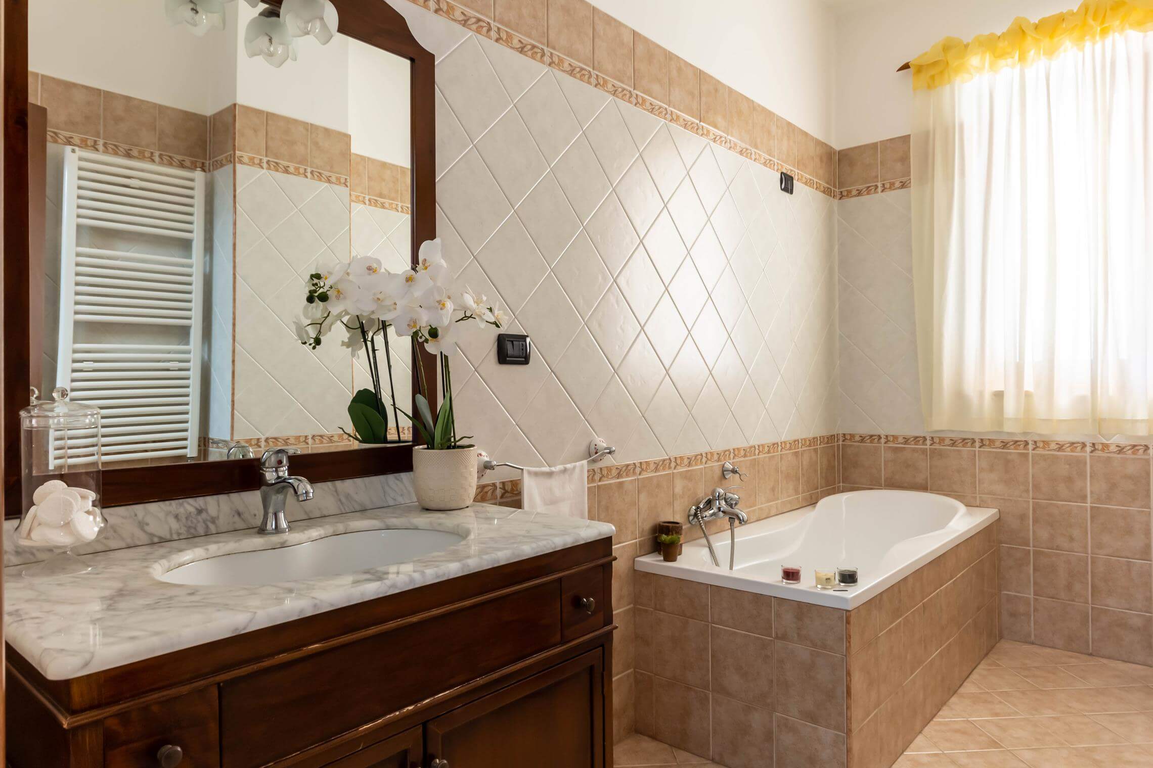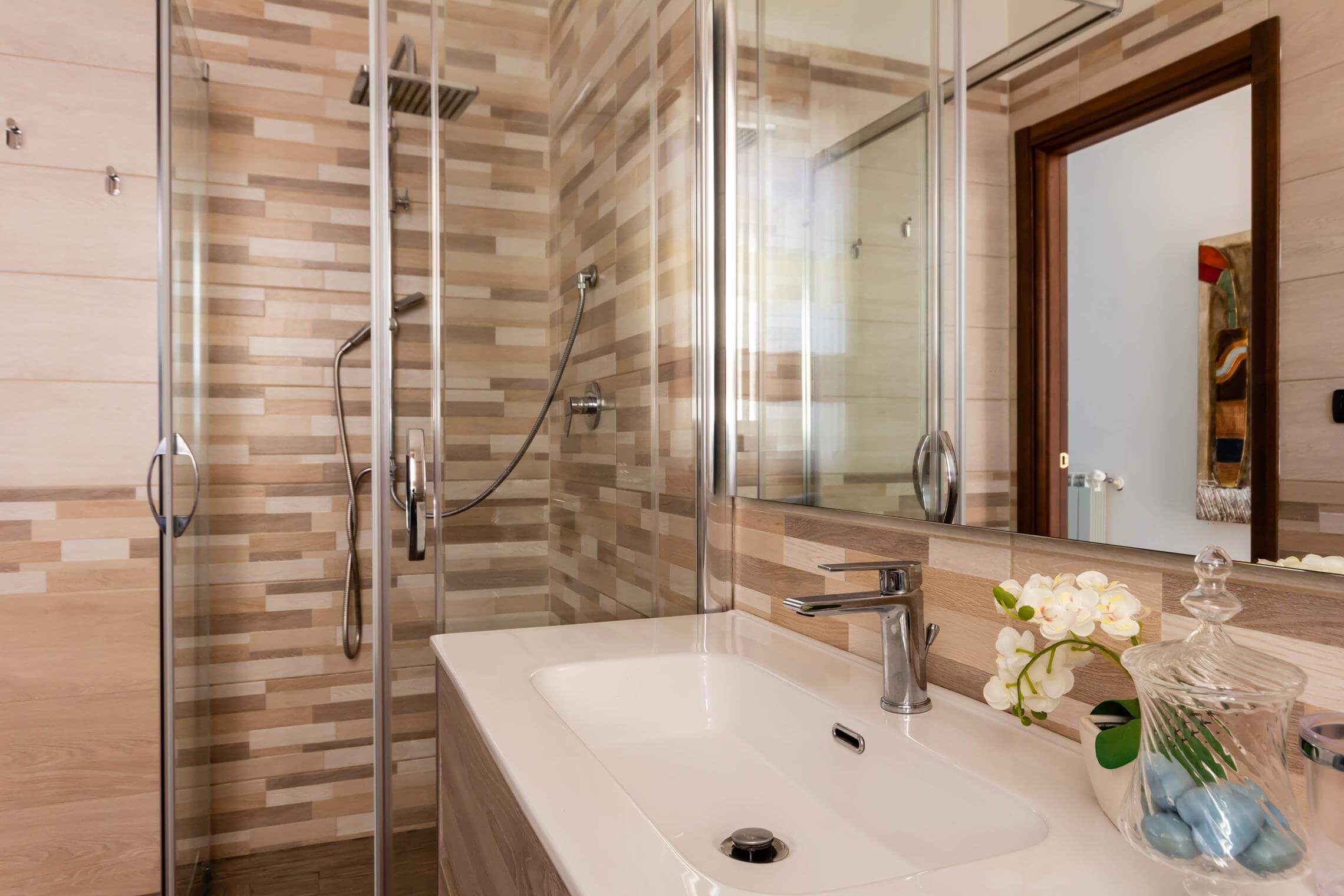 Il piano seminterrato ospita un garage di 80 mq e una taverna con bagno di 45 mq, perfetta per momenti di relax.